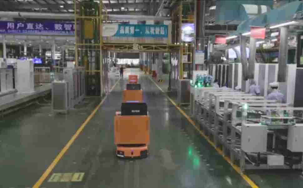 为车载冰箱物流配送打造的智能解决方案,,,,包含产中物流通过潜伏举升AMR搬运至线边,,,产后成品物流智能仓储,,流程包含产中物流智能齐套入库,,,线边安灯叫料AMR智能配送至线边,,,成品入库、、、、出库,,,通过无人堆高车机器人,,,,智能仓储管理替代人工作业管理,,,实现更高存储、、更高效率、、更具柔性化的解决方案。。。。